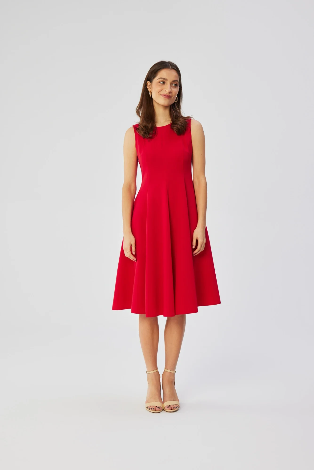 Vstupujeme do světa polského designu a představujeme jedinečné šaty, které vyzařují styl, eleganci a pečlivé řemeslné zpracování. Tento jedinečný výtvor byl navržen a ušit v Polsku s důrazem na detail a individualitu. Šaty bez rukávů zaujmou vypasovaným střihem v horní části, který zdůrazňuje půvaby postavy, aby se později směrem dolů jemně rozšířily. Silně naznačený pas dodává šatům ženský půvab a neobyčejnou eleganci, díky níž se každá žena, která je nosí, cítí výjimečně. Podlouhlé zeštíhlující prošití dodává šatům jemné tvarování a zvýrazňuje přednosti postavy. Kulatý výstřih vpředu dodává šatům klasický vzhled, zatímco výstřih do V na zádech dodává šatům nádech smyslné rafinovanosti. Skrytý zip umístěný na zádech poskytuje elegantní a zároveň praktický způsob, jak šaty obléknout. Jako bonus přidávají boční kapsy šatům ležérní nádech a činí z nich praktickou a pohodlnou volbu. Šaty sahají nad kolena, takže jsou ideální volbou pro mnoho příležitostí, jak formálnějších, tak ležérnějších. Navzdory své eleganci nemají šaty žádnou podšívku, takže jsou lehké, vzdušné a ideální pro teplejší dny. Jsou skutečným dílem krejčovského umění, z něhož vyzařuje polské řemeslo a tradice.
