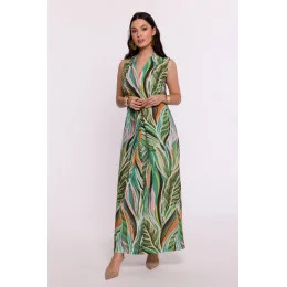 Šaty výjimečného designu z lehké tkaniny s originálním potiskem jsou skutečnou poctou polskému návrhářskému řemeslu. Tento model jsou maxi šaty, jejichž charakter podtrhuje smyslný výstřih ve tvaru písmene V. Pod výstřihem je navíc umístěno elegantní překrytí, které dodává kreaci jemnost a styl. Šaty jsou praktické a rychle se oblékají, protože se nosí přes hlavu, takže jejich nošení je velmi pohodlné. Střih bez rukávů dodává šatům lehkost a působí vzdušným letním dojmem. Absence podšívky zase podtrhuje lehkost materiálu a umožňuje pokožce volně dýchat. Na boku šatů je umístěn decentní rozparek, který dodává kreaci rafinovaný pohyb a zdůrazňuje ženskou siluetu. Látka s originálním potiskem je jedinečným prvkem, který dodává šatům osobní nádech a činí je jedinečnými. Návrh a výroba šatů probíhá v Polsku, což dokazuje závazek vůči módnímu průmyslu této země. Tyto šaty jsou nejen vyjádřením individuálního stylu, ale také hrdosti na polské dědictví tvořivosti a řemeslné zručnosti.