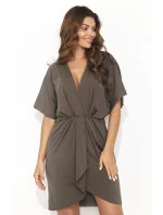 Krásné krátké kimonové šaty s jemnou šňůrkou v pase vyzařují eleganci a šik. Zlatá třpytivá destička na zádech dodává jemný dekorativní nádech. Hluboký výstřih zvýrazňuje poprsí a dodává šatům smyslný nádech. Tyto ženské šaty se skvěle hodí jak do práce, kde jim dodají elegantní šarm, tak na elegantní večeři, kde vytvoří nezapomenutelný vzhled. Jsou k dispozici v několika barvách, takže si můžete vybrat odstín, který nejlépe odráží individuální styl ženy, která je nosí. Jedná se o kombinaci klasiky a moderny, která jistě upoutá pozornost.