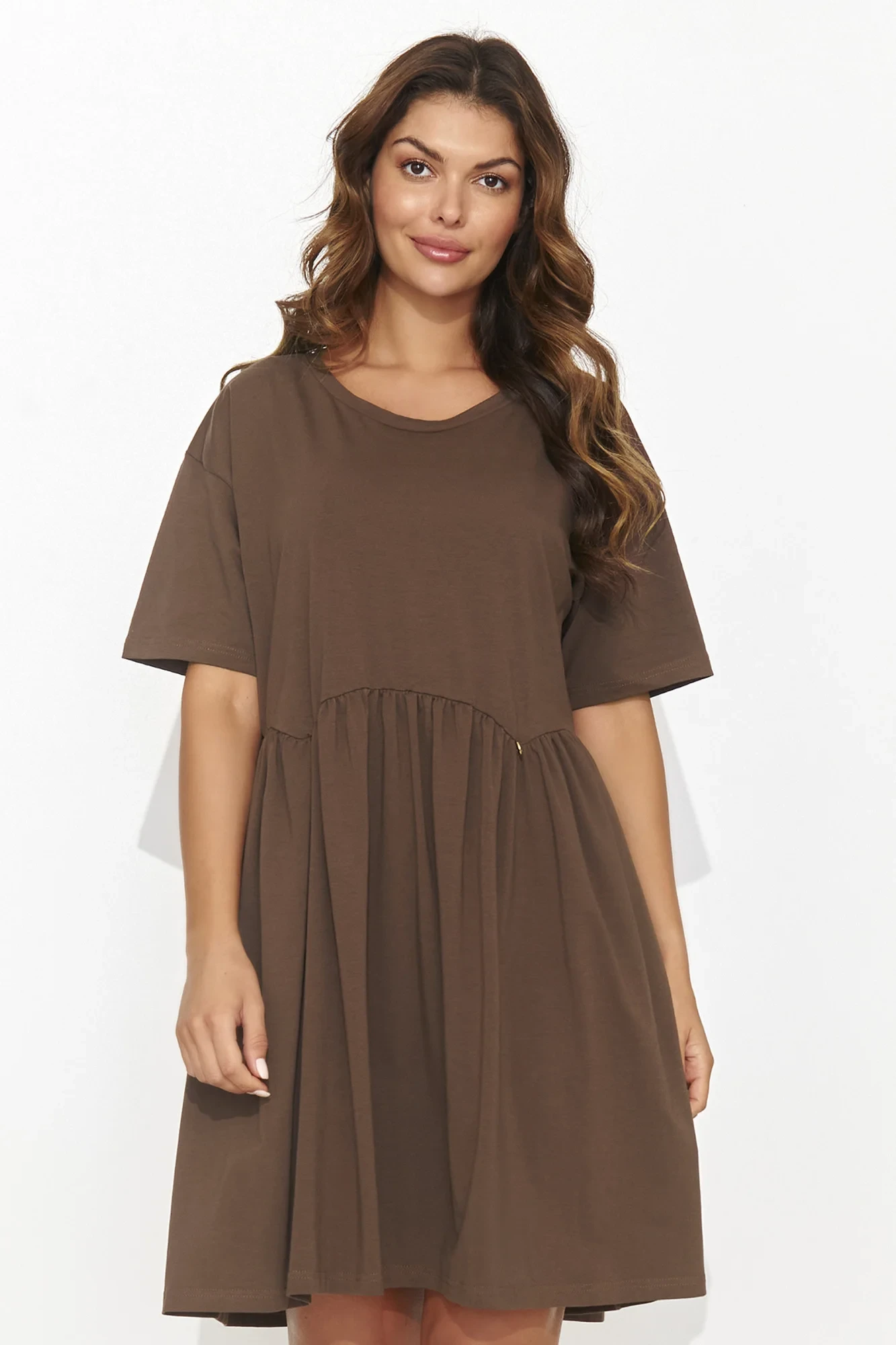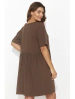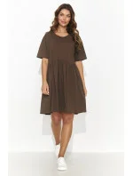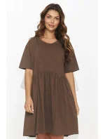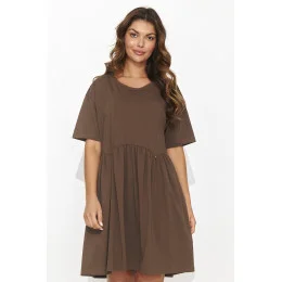 Ležérní mini šaty s jedinečným šarmem, které mají na přední straně našitou elegantní zlatou destičku. Kreace s krátkými rukávy a ležérním střihem vyzařuje dívčí půvab. Kulatý výstřih dokonale podtrhuje bezstarostný vzhled a dodává lehkost a volnost. Tyto šaty, které jsou k dispozici v různých barvách, jsou dokonalou každodenní volbou, která dodá styl každodenním aktivitám. Skvěle se hodí do práce, ale i na setkání s přáteli. Vše je jen otázkou doplňků. Je to kombinace pohodlí, elegance a dívčí jemnosti a velmi pohodlný každodenní styl.
