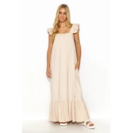 Maxi šaty s volánky na ramínkách a ve spodní části jsou kvintesencí letního stylu a ležérnosti. Díky praktickým postranním nakládaným kapsám vypadají šaty nejen stylově, ale jsou také funkční. Díky volnému střihu jsou mimořádně pohodlné a vhodné pro nejrůznější příležitosti. Lze je nosit volně, a zvolit tak lehkost a ležérnost, nebo je sepnout páskem, který zvýrazní pas a dodá kreaci výraznější tvar. Je k dispozici v různých barvách, takže vám umožní přizpůsobit se vašemu stylu a náladě. Tyto šaty jsou ideální na procházku po molu nebo na romantickou večeři při západu slunce, budete v nich vypadat nejen stylově, ale budou také pohodlné a lehké na nošení, takže si budete moci naplno užívat letních chvil.