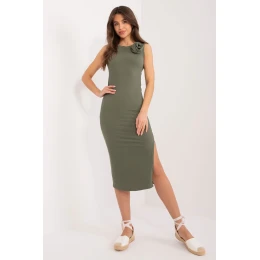 Letní šaty z žebrované látky jsou kombinací sofistikovaného stylu a lehkosti, ideální pro každý den. Tyto šaty jsou vyrobeny z vysoce kvalitní bavlny pro pohodlné nošení a volnost pohybu a nesmí chybět ve vašem letním šatníku. Jejich tužkový střih zvýrazňuje ženskou siluetu, dodává eleganci a sofistikovanost a zároveň zajišťuje pohodlí po celý den. Díky midi délce jsou šaty univerzální a ideální pro různé situace. Šaty jsou bez rukávů, takže jsou ideální pro teplé letní dny a umožňují pokožce volně dýchat. Kulatý výstřih je univerzální a hodí se k mnoha různým stylům. Na přední straně šatů je umístěna ozdobná látková květina, která dodává šatům jemnost a dívčí půvab. Tento jedinečný prvek dodává šatům charakter a činí je velmi nápadnými. Tyto šaty z žebrované látky jsou ideální volbou pro každodenní nošení a dodají styl a svěžest každému letnímu outfitu. Ať už se jedná o líné procházky po pláži nebo setkání s přáteli, tyto šaty vás ohromí svým šarmem a pohodlím.
