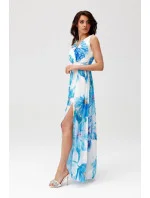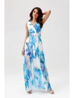 Šifonové maxi šaty se vyznačují promyšleným, velmi pohodlným střihem, který vám umožní cítit se na důležitých oslavách svobodně a pohodlně. Silná ramínka poskytují dobrou oporu, vrstvený výstřih zvýrazňuje poprsí a zúžený pas podtrhuje pas. Šaty jsou vyrobeny z lehké šifonové tkaniny a mají všitou podšívku, která zabraňuje průsvitnosti. Na zádech mají nápadný výřez, který vkusně odhaluje a obnažuje záda. Dlouhá, volně splývající sukně stydlivě odhaluje nohy díky rozparku na nohavici. Zapíná se vzadu na zip. Vzorované šaty Charlotte budou skvěle vypadat s doplňky v tlumených barvách. Vzhled krásně doplní béžová nebo bílá kabelka a sandály na podpatku. Doplňte je střídmými šperky a pro elegantní vzhled si k nim oblečte sako. Šaty se hodí na svatbu, křtiny, svaté přijímání i letní zahradní party.