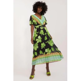 Letní šaty s krátkými rukávy v podobě volánků. Šaty s podšívkou. Obálkový výstřih, v pase zapínání na pásek, nařasený spodní lem. Ideální pro mnoho příležitostí.