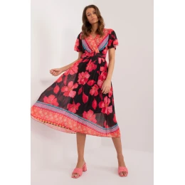 Letní šaty s krátkými rukávy v podobě volánků. Šaty s podšívkou. Obálkový výstřih, v pase zapínání na pásek, nařasený spodní lem. Ideální pro mnoho příležitostí.