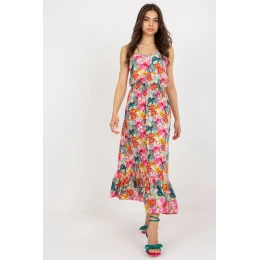 Dlouhé letní šaty se silnějšími ramínky a srdíčkovým výstřihem. Pružný pas, volánový lem.