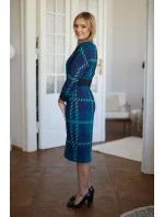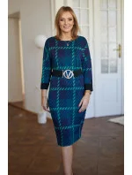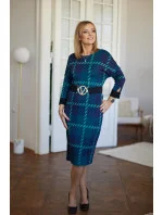 Velmi ženské a pohodlné šaty z žakárového úpletu s přídavkem elastanu. Navrženy v souladu se zásadami značky, tj. s ohledem na zralé ženy. Kimonový top se spadajícími rukávy, elastický pas s velkou ozdobnou sponou pro nastavení obvodu pasu, tlumené barvy a měkký a dobře ovladatelný úplet o hmotnosti cca 280 gm2. Díky tomu všemu jsou šaty ideální pro větší velikosti.