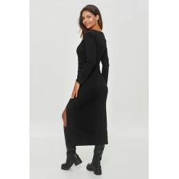 Elegantní šaty jsou návrhem s moderními detaily, které jim dodávají výraz. Model je přizpůsobený, zdůrazňující tak siluetu. Dosahuje poloviny lýtek a jeho délka z něj dělá vhodnou pro různé příležitosti. Vyrobeny z elastického, měkkého materiálu, který se pohodlně přizpůsobuje tělu. Horní část šatů má klasický, kulatý výstřih a dlouhé rukávy, což jim dodává eleganci a činí je vhodnými na chladné dny. Na výšce boků je charakteristické rýhování, které je uspořádáno v horizontálních záhybech. Tento detail dodává šatům unikátní charakter a opticky zjemňuje siluetu. Šaty mají výrazné rozštěpení vpředu v oblasti stehen, což jim dodává smyslnost a umožňuje větší volnost pohybu. Můžete je kombinovat s černými, vysokými kozačkami na ploché podrážce, což stylizaci dodá rockový nádech. Jsou skvělou volbou pro večerní výjezdy nebo formální příležitosti pro ženy, které ocení klasiku s moderním twistem.