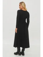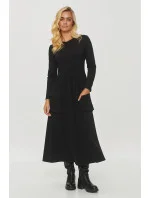 Rozšířené šaty jsou skvělou volbou pro ty, kteří ocení spojení stylu a funkčnosti. Model má klasický, ženský střih midi délky s rozšířeným dnem. Vyrobeno z měkkého, pohodlného materiálu, který se skvěle hodí k běžnému nošení. Šaty mají dlouhé rukávy, což je dělá ideální na chladnější dny. Oddělení v pasu dává efekt subtilních záhybů, které zdůrazňují siluetu a přidávají šatičkám kouzlo. Charakteristickým prvkem jsou velké nasazené kapsy vpředu, navíc zdobené elegantní pozlacovanou ozdobou, které nejen přidávají styl, ale také plní praktickou funkci. Tento model kombinuje pohodlí a módní design, což ho dělá ideální volbou na různé příležitosti.
