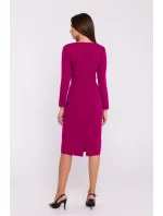 Elegantní tkané šaty jednoduchého tužkového střihu, které se hodí pro různé příležitosti. Dlouhé rukávy a vykrojení v pase jemně zvýrazňují siluetu a vytvářejí klasický vzhled. Šaty se vyznačují asymetrickým výstřihem s překrytím, který dodává originalitu a moderní styl. Délka pod kolena a rozparek na zádech ve spodní části zajišťují volnost pohybu a eleganci. Na zádech je krytý zip pro diskrétní zapínání. Šaty jsou bez podšívky, takže jsou lehké a pohodlné. Jsou navrženy a ušity v Polsku a jsou návrhem pro ženy, které ocení eleganci a jednoduchost.
