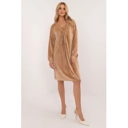 Velurové šaty pro každodenní nošení jednoduchého střihu, které kombinují pohodlí a styl a jsou ideální pro všechny každodenní příležitosti. Šaty jsou vyrobeny z vysoce kvalitních materiálů kombinujících polyester a elastan a nabízejí příjemný střih a volnost pohybu. Mají hladký design a elegantní srdíčkový výstřih, který opticky prodlužuje krk. Dlouhé rukávy dodávají šatům noblesu, zatímco ozdobné řasení ve výstřihu působí decentně a jedinečně. Další zajímavostí je odnímatelná visačka s motýlkem, která celému vzhledu dodává punc originality. Díky délce pod kolena jsou šaty ideální pro každodenní nošení a absence zapínání usnadňuje jejich oblékání. Jsou ideální volbou pro ženy, které ocení pohodlí a zároveň chtějí vypadat elegantně a módně.
