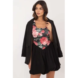 Tyto mini šaty jsou ideální volbou pro každodenní nošení a kombinují pohodlí a módní vzhled. Jsou vyrobeny ze směsi viskózy a polyesteru, takže jsou lehké a pohodlné, zatímco všitá podšívka dodává pohodlí a skvěle se v nich cítí. Horní část šatů zdobí jemný květinový potisk, zatímco spodní část je ponechána v jednolité, klasické černé barvě pro stylový kontrast. Šaty mají kulatý výstřih a ramínka, která zdůrazňují lehkost střihu. Všité košíčky poskytují dodatečnou oporu a díky absenci zapínání se šaty snadno nosí.