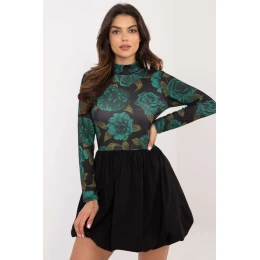 Toto je výjimečné šaty, které spojují modernost a romantiku. Horní část vyrobena z pruhované látky s květinovým potiskem přidává charakter, a rozšířený spodek ve tvaru baňky zdůrazňuje ženské tvary. Dlouhý rukáv a polokošile zajišťují teplo a pohodlí, a ozdobné rimplovaní přidává jemnosti. Šaty jsou ideální jak na každý den, tak na speciální příležitosti. Tyto šaty jsou must-have pro každou módní ženu. Jejich původní střih a kombinace různých faktur vám dodají pocit výjimečnosti v každé situaci.