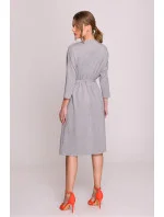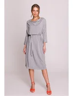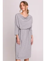 Elegantní šaty ve formě oversize, vyrobené z vysoce kvalitní modální látky, která je měkká, prodyšná a velmi příjemná na pokožku. Volný střih zajišťuje pohodlí nošení a přiložený pásek umožňuje zdůraznění pasu podle vlastních preferencí. Výstřih typu voda dodává kreaci elegantní charakter, jemně se skládající kolem krku. Šaty mají délku nad kolena a 3/4 rukávy, co je činí univerzální volbou jak na každý den, tak na speciální příležitosti. Model se obléká přes hlavu, bez zbytečných zapínání. Navrženo a ušito v Polsku s důrazem na každý detail.