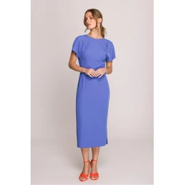Elegantní a ženské šaty midi s přiléhavým střihem, který zdůrazňuje postavu. Zastřešený vrch jí dodává klasický charakter a hluboký výstřih ve tvaru písmene V na zádech přidává jemnou smyslnost. Krátké rukávy zajišťují pohodlí a univerzálnost pro různé příležitosti. Šaty se zapínají na skrytý zip po stranách, díky čemuž se skvěle přizpůsobují tělu. Rozpark na boku přidává lehkost a volnost pohybu. Model navržený a ušitý v Polsku s důrazem na detaily a vysokou kvalitu zpracování. Ideální na elegantní večírky, recepce a speciální příležitosti.