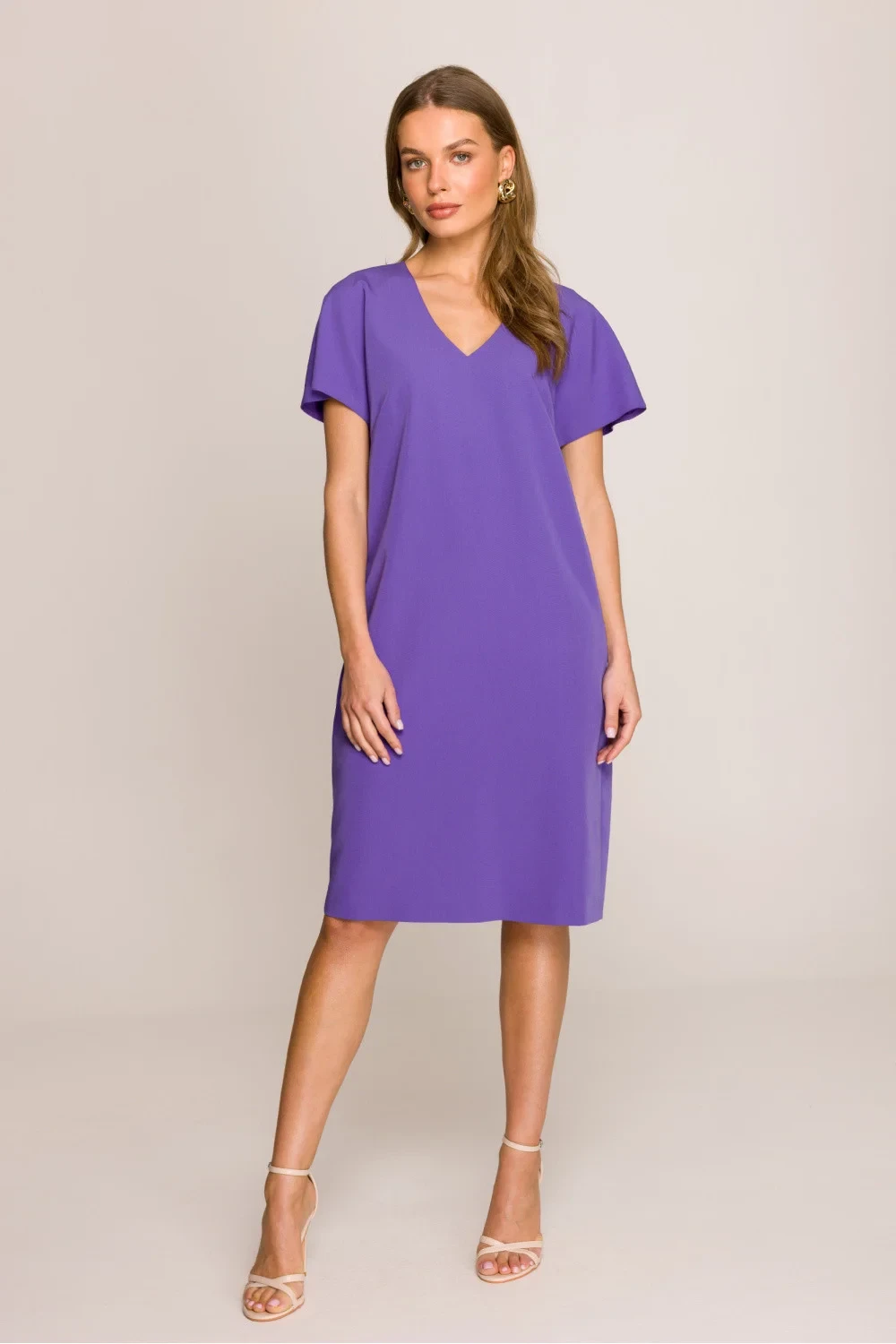 Šaty s volným střihem, které zajistí volnost pohybu a pohodlí po celý den. Délka po kolena je univerzální volbou pro mnoho příležitostí. Krátké rukávy dodávají lehkost, ideální pro teplé dny. Výstřih ve tvaru písmene V decentně zdůrazňuje krk, dodávajíc šatům ženský charakter. Skrytý zip na zádech zajišťuje pohodlí při oblékání, a další rozpark vzadu přidává špetku elegance. Šaty jsou bez podšívky, co je činí ještě prodyšnějšími a pohodlnějšími. Navrženy a ušity v Polsku, co zaručuje vysokou kvalitu zpracování a péči o detaily. Ideální volba pro ženy, které ocení styl, pohodlí a eleganci v každodenních outfitech.