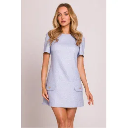 Půvabné mini šaty ve tvaru trapezu, vyrobené z elegantní látky, která se krásně přizpůsobuje postavě. Model je zdůrazněn krátkými nadýchanými rukávy, které dodávají lehkost a romantický charakter. Na přední straně jsou ozdobné kapsy s pozlatěnými srdcovitými knoflíky, které jí dodávají jedinečný šarm. Šaty se zapínají vzadu na skrytý zip, co zajišťuje pohodlné nošení a estetické dokončení. Díky absenci podšívky jsou lehké a prodyšné. Celý kousek je navržen a ušit v Polsku s důrazem na každý detail.