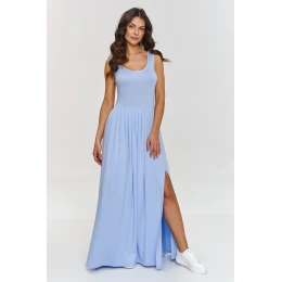 Tento maxi šaty jsou kombinací elegance a pohodlí, ideální na jarní a letní dny. Vyrobené z příjemné viskózy, která zajistí prodyšnost a pohodlí při nošení. Šaty mají hluboký výstřih, který zdůrazňuje horní část postavy a široká ramínka zaručují univerzálnost a módní vzhled. Délka maxi opticky prodlužuje postavu a jemné záhyby zajišťují lehkost a plynulost pohybů, dávají šatům dynamický a zároveň elegantní charakter. Jemné rozparky po stranách přinášejí prvek smyslnosti a ženskosti. Díky nim jsou šaty pohodlné na nošení a umožňují volný pohyb. Maxi šaty s rozparkem jsou synonymem elegance a stylu, které se hodí jak do každodenních, tak formálních stylizací v závislosti na doplňcích, které si k nim vyberete.