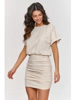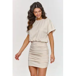 Šaty s krátkými rukávy a efektním zauzlením jsou ideální volbou pro ženy, které ocení eleganci a styl v jednom. Díky volnému vrchnímu dílu a přiléhavé spodní části šaty skvěle zdůrazňují postavu a zároveň poskytují pohodlí při nošení. Kolečko výstřihu dodává celé kreaci decentní třídu. Zauzlení po stranách ve spodní části šatů jí dodává smyslný charakter, modelující postavu a dodávající celku moderní vzhled. Šaty mají mini délku, což hezky zdůrazňuje nohy a vytváří lehký, ženský vzhled. Model je vyroben z elastického materiálu, který je příjemný k tělu, poskytující pohodlí a volnost pohybu po celý den. Šaty se hodí jak na formální, tak na méně oficiální události. Můžete je zkombinovat s elegantními botami nebo s casual teniskami nebo těžkými pracovními botami, vytvářející zajímavé a nadčasové stylizace.