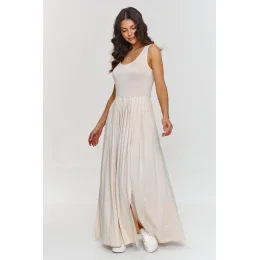 Tento maxi šaty jsou kombinací elegance a pohodlí, ideální na jarní a letní dny. Vyrobené z příjemné viskózy, která zajišťuje prodyšnost a pohodlí při nošení. Šaty mají hluboký výstřih, který zdůrazňuje horní část postavy a široké ramínka zaručují univerzálnost a módní vzhled. Maxi délka opticky prodlužuje postavu a jemné záhyby zajišťují lehkost a plynulost pohybů, dodávají šatům dynamický a zároveň elegantní charakter. Jemné rozštěpení na boku přináší prvek smyslnosti a ženskosti. Díky němu jsou tyto šaty pohodlné a umožňují volný pohyb. Maxi šaty s rozštěpením jsou synonymem elegance a stylu, které se skvěle hodí jak do každodenních, tak do formálních stylizací v závislosti na tom, jaké doplňky k nim zvolíte.