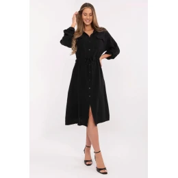 Elegantní letní šaty ve stylu košile, vyrobené z prodyšné přírodní bavlny. Hladká tkanina a klasická délka midi dělají z tohoto modelu skvělou volbu pro každodenní stylizace. Mají dlouhý rukáv s možností přehnutí, praktický límec a zapínání na knoflíky po celé délce. Šněrování v pase jemně zdůrazňuje pas, a kapsy s patkami na hrudi přidávají funkčnost a charakter. Ideální na procházky, do práce nebo na setkání s přáteli, univerzální a vždy stylové.