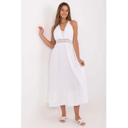 Přidejte trochu letního uvolnění a ženského šarmu do svého šatníku s touto rozkročenou šaty v boho stylu. Vyrobená z prodyšné bavlny s přídavkem elastanu, zaručuje pohodlí a volnost pohybu i v horkých dnech. Midi šaty s vázanými ramínky kolem krku krásně zdůrazňují ramena a záda. Výstřih do V decentně podtrhuje ženskou siluetu a ozdobná krajková část na přední straně dodává celku romantický charakter. Hladký materiál a volán na spodní části dělají šaty lehké a vzdušné. Ideální volba na každodenní letní příležitosti jako procházky, pláž nebo setkání s přáteli. Boho styl v nejlepším, ženském provedení. Délka šatů v tabulce je uvedena bez vázání. Délka vázání je 72 cm.