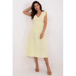 Tato roztomilá mušelínová šaty jsou kvintesencí letního stylu, lehké, vzdušné a neuvěřitelně ženské. Vyrobené z vysoce kvalitní bavlny, okouzlují měkkostí a prodyšností, díky čemuž se skvěle hodí i pro horké dny. Rozkročený střih dodává postavě lehkost, zatímco midi délka spojuje pohodlí s elegancí. Krátké rukávy ve formě jemných volánů a srdcovitý výstřih zdůrazňují subtilní, dívčí charakter šatů. Dalším bonusem je efektní šněrování na zádech, které nejen umožňuje lépe přizpůsobit šaty postavě, ale také představuje stylový akcent. Hladký materiál a klasický střih z ní dělají skvělou volbu jak pro každodenní nošení, tak i pro letní výlety.