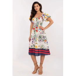 Romantické a stylové letní šaty s rozkročeným střihem, které okouzlují ženskou elegancí a lehkostí. Vyrobené z prodyšné směsi lnu a polyesteru, ideální pro teplé dny, poskytující pohodlí a volnost pohybu. Model midi délky s krátkými nadýchanými rukávy a moderním čtvercovým výstřihem, který krásně zdůrazňuje klíčníky. Šaty se oblékají přes hlavu, což je činí pohodlnými a praktickými na každodenní nošení. Jemný květinový vzor přidává svěžest a kontrastní lemování dole představuje originální akcent, který tento model vyzdvihuje mezi ostatními. Ideální na procházky, setkání s přáteli nebo letní výlety do města.