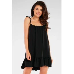 Letní šaty z měkké pleteniny. Model rozšiřovaný ke dnu zakrývá drobné nedokonalosti postavy a je skvělou volbou pro těhotné ženy. Šaty jsou dokončeny volánem, který přidává dívčí charakter celku. Navrženo a ušito v Polsku.