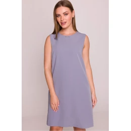 Elegantní šaty vyrobené z hladké, lehce elastické látky s saténovým povrchem, který jemně leskne a dodává celku výjimečný charakter. Model s kulatým výstřihem pod krkem zdobený kovovým prvkem, který přidává jemnou eleganci. Šaty bez rukávů, zapínající se na skrytý zip vzadu, což zajišťuje pohodlí nošení a minimalistický vzhled. Střih jednoduchý, trapézový, volný a nesedící na postavě, ideální na každý den a do kanceláře. Šaty mají podšívku, která zvyšuje pohodlí a trvanlivost oblečení. Délka před koleno zdůrazňuje ženskou siluetu a zároveň poskytuje volnost pohybu. Navrženo a ušito v Polsku.