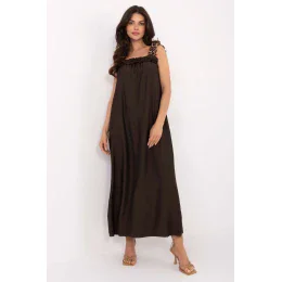 Letní maxi šaty na ramínka vyrobené z lehké, prodyšné viskózy jsou ideální volbou pro každodenní outfit v teplých dnech. Střih je lehce rozkročený, zdůrazňující ženskou siluetu a poskytující volnost pohybu. Šaty se vyznačují obdélníkovým výstřihem zdobeným decentním volánkem, který dodává celku romantický nádech. I když převládá hladký materiál, na ramínkách se objevuje módní akcent v podobě leopardího vzoru, který outfitu dodává trochu dravosti. Model nemá zapínání, nasazuje se přes hlavu, což zvyšuje pohodlí nošení. Ideální na procházky, nákupy nebo letní setkání s přáteli.