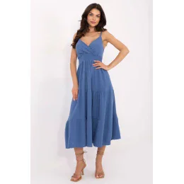 Letní midi šatička z mušelínu na ramínkách je ideální volbou pro každodenní pohodlné outfity. Vyrobená z měkké a prodyšné bavlny je skvělá na teplé dny, poskytuje lehkost a pohodlí. Rozkročený střih krásně padne na postavě a hladká látka zdůrazňuje přirozený, minimalistický styl. Záhyb přesahující přes hrudník jemně zvýrazňuje výstřih a dodává ženský šarm. Šatička nemá zapínání, obléká se přes hlavu a elastické rouchované gumy pod prsy a na zádech zajišťují ideální přizpůsobení postavě. Dodatečná volánka dole dodává šatičce romantický, dívčí charakter. Skvělá na procházky, setkání s přáteli nebo letní den ve městě.
