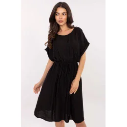Letní viskózové šaty s rozkročeným střihem jsou pohodlným a stylovým návrhem na každodenní vycházky. Vyrobeny z lehkého, prodyšného viskózu, poskytují pohodlí i v horkých dnech. Hladká tkanina a délka nad kolena jí dodávají univerzální charakter, který se hodí jak na procházky, tak na setkání s blízkými. Krátký rukáv a klasický kulatý výstřih zdůrazňují jednoduchost a ženskost modelu. Další výhodou je uvázání v pase, které podtrhuje pas a dodává postavě lehkost. Jsou to ideální letní šaty vzdušné, praktické a vždy v módě.
