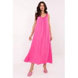 Letní midi šaty ve stylu oversize jsou ideální volbou pro každodenní volné stylizace. Vyrobené z lehké a prodyšné viskózy, skvěle se hodí na teplé dny, poskytují pohodlí a pohodlí. Hladká látka a volný střih zaručují plnou volnost pohybu, a výstřih do V decentně zdůrazňuje linii krku a dodává ženský šarm. Šaty na tenkých ramínkách, bez zapínání, snadno se oblékají a jsou mimořádně praktické. Je to ideální model na léto - lehký, prodyšný a stylový ve své jednoduchosti.