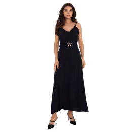 Letní maxi šaty na ramínka jsou stylovým a pohodlným návrhem pro každodenní výlety. Vyrobené z lehkého polyesteru, který se dobře přizpůsobuje postavě a je snadno udržovatelný. Hladké tkaniny zdůrazňují eleganci modelu, zatímco rozkvetlý střih dodává lehkost a volnost. Výstřih v srdíčkovém tvaru zdobený jemným volánem dává šatům ženský půvab a romantický charakter. Model nemá žádné zapínání, nasazuje se přes hlavu, což zvyšuje pohodlí nošení. Další výhodou je zapínací pásek, který umožňuje zdůraznit pas a dát postavě požadovaný tvar. Ideální na letní procházky, setkání nebo každodenní aktivity.
