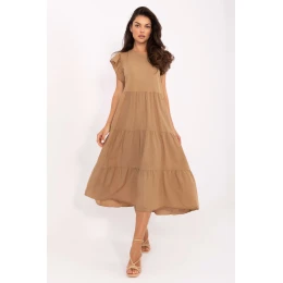 Volná, pohodlná a stylová, tato oversize bavlněná šaty jsou ideální volbou pro každodenní letní střihy. Vyrobené z přírodního, prodyšného materiálu, poskytují volnost pohybu a pohodlí po celý den. Model střední délky z hladké látky s kulatým výstřihem a krátkým rukávem zakončeným jemným volánem, který přidává ženský akcent. Zadní část šatů zdobí jemné vázání na zádech, což celku dodává lehce romantický charakter. Šaty se skvěle hodí na každodenní nošení do práce, na nákupy, procházky nebo setkání s přáteli. Stylové ve své jednoduchosti budou skvělým základem pro mnoho letních outfitů.