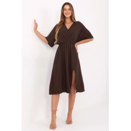 Letní šaty z prodyšného mušelínu jsou must-have v každodenní garderobě. Vyrobena z 100% bavlny, poskytuje výjimečný komfort a prodyšnost i v horkých dnech. Rozkročený střih s překrytým předním dílem krásně zdůrazňuje postavu, a elastický pásek v pasu zajistí ideální přizpůsobení bez nutnosti zapínání. Hladká tkanina, midi délka a krátký rukáv dělají tyto šaty univerzálními, skvělé jak na procházku, tak na volné setkání. Přírodní lehkost, pohodlí a nadčasový styl.
