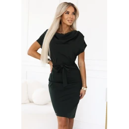 Elegantní, přizpůsobené šaty v moderním odstínu tmavé khaki jsou must-have v ženské šatníku. Model má krátký rukáv, decentní výstřih typu voda a pásek uvázaný v pasu, který krásně zdůrazňuje postavu. Vyrobeno z vysoce kvalitního elastického materiálu, zaručuje pohodlné nošení a ideální přizpůsobení postavě. Šaty se skvěle hodí na každodenní nošení, do práce, stejně jako na schůzky a elegantní události. Vsadte na eleganci a pohodlí, vyberte si šaty od značky Numoco a buďte každý den cítit výjimečně! Polský výrobek značky Numoco.