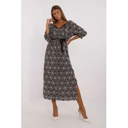 Jednoduché koktejlové šaty midi délky vyrobené z přírodní bavlny s ažurovým vyšíváním spojují eleganci s jemným půvabem. Model s 3/4 rukávem zdobeným jemným volánem a šněrováním u dekoltu dodává celku romantický charakter. Šaty mají podšívku pro pohodlné nošení a pásek k šněrování zdůrazňuje pas. Dalším akcentem je rozpark u spodní části na levé straně, který dodává lehkost a ženskou grácii. Díky absenci zapínání jsou pohodlné na oblékání. Skvěle se hodí jak do práce, tak na formální příležitosti.