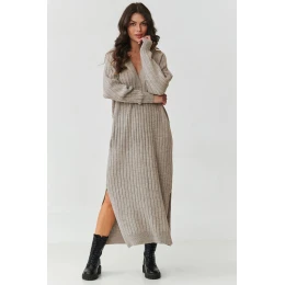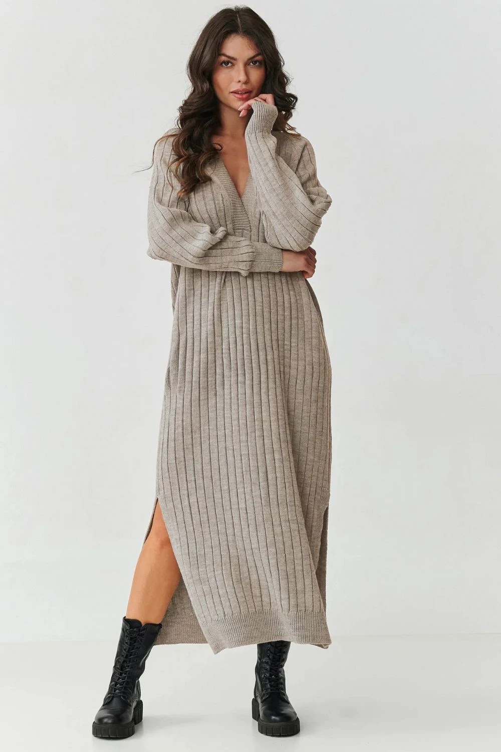 Vsadit na výjimečnou eleganci a maximální pohodlí! Tato dlouhá svetrová šaty s pruhovaným vzorem jsou ideální volbou na chladnější dny, kombinuje nadčasový styl a pohodlí, ve kterém se budete cítit žensky a módně. Vyrobena z 100% akrylu vysoké kvality, je měkká, příjemná na dotek a snadno se udržuje. Volný střih s výstřihem do šílku krásně zdůrazňuje postavu, a praktické rozřezání po stranách přidává lehkosti a volnosti pohybu. Šaty skvěle ladí jak s elegantními botami, tak s těžšími botami ve vojenském stylu, vytvářejíce stylizace od neformálních po výraznější. K dispozici v několika decentních barvách: černé, cappuccino, čokoládové, grafitové melanzové a šedé melanzové, takže si snadno vyberete ideální odstín pro svůj styl. Jsou to šaty, které se osvědčí jak v běžném životě, tak v práci, tak i na večerní setkání, vždy vypadáte módně a žensky.