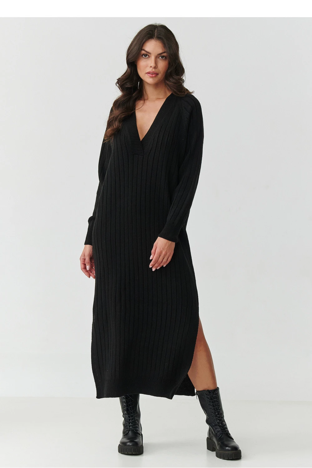 Sázejte na výjimečnou eleganci a maximální pohodlí! Tato dlouhá svetráková šaty s pruhovaným vzorem jsou ideálním návrhem na chladné dny, spojuje v sobě nadčasový styl a pohodlí, ve kterém se budete cítit žensky a módně. Vyrobená z 100% vysoce kvalitního akrylu, je měkká, příjemná na dotek a snadno se udržuje. Volný střih s výstřihem do V krásně zdůrazňuje postavu, a praktické rozeknutí po stranách dodává lehkost a volnost pohybu. Šaty skvěle ladí jak s elegantními botami, tak s těžšími botami v militaristickém stylu, vytvářejí stylizace od casual po výraznější. K dispozici v několika decentních barvách: černá, cappuccino, čokoládová, grafitová melanz a šedá melanz, díky čemuž si snadno vyberete ideální odstín pro svůj styl. Jsou to šaty, které se hodí jak do každodenního života, do práce, tak i na večerní setkání, vždy v nich vypadáte módně a žensky.