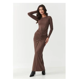 Maxi šaty s dlouhým rukávem jsou kvintesencí ženskosti a elegance, vytvořené s ohledem na ženy, které rády zdůrazňují své přednosti a chtějí se cítit výjimečně v každé situaci. Vyrobena z elastického, příjemného na dotek materiálu, skvěle se přizpůsobuje postavě, poskytujíc nejen pohodlí, ale také perfektní vzhled po celý večer. Největším předností těchto šatů je efektní mašlování v pasu, které opticky zjemňuje postavu, zdůrazňuje ženské tvary a zároveň maskuje drobné nedokonalosti. Díky tomu se každá žena v nich bude cítit sebevědomě a atraktivně. Maxi délka dodává kreaci eleganci a celkově vypadá mimořádně stylově a elegantně. Univerzální střih umožňuje snadné sladění doplňků, šaty skvěle vypadají jak ve spojení s klasickými podpatky, tak s moderními kotníčkovými botami nebo sandálky na podpatku. Můžete je zkombinovat s jemným šperkem pro subtilní efekt nebo s výraznějšími doplňky, pokud chcete vytvořit silnější večerní look. Osloví vás při rodinných setkáních nebo vánočních večírcích, kdy chcete vypadat výjimečně a cítit se sebevědomě. Elegantní maxi šaty s mašlováním jsou synonymem ženskosti a nadčasové elegance. Pokud hledáte kreaci, která zdůrazní vaši postavu, přidá vám sebevědomí a bude vhodná na mnoho příležitostí, tento model je skvělou volbou.