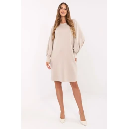 Oversize šaty s casual charakterem ideální na každý den. Vyrobeno z směsi viskózy, polyesteru, elastanu a modalu, z materiálu typu máslo, který je neuvěřitelně měkký, jemný a mimořádně příjemný na dotek. Hladký model, dlouhý po kolena, s klasickým, kulatým výstřihem. Dlouhé nafouklé rukávy jí dodávají lehkost a ženské kouzlo, prolomují přímou formu oversize. Je to pohodlná a zároveň stylová volba, která se hodí jak do domácího útulku, tak do každodenních městských stylizací.