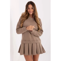 Tato dámská šaty kombinují pohodlí a ženský styl, ideální na každodenní příležitosti. Vyrobené z měkké bavlny s přídavkem elastanu, poskytují pohodlí nošení, pružnost a příjemné přizpůsobení se postavě. Model má kulatý výstřih, dlouhé rukávy a rozkročený střih, který se krásně skládá v pohybu. Plisovaný spodek šatů dodává lehkost a jemnou eleganci, zateplení zase zaručuje skvělé fungování v chladnějších dnech. Mini šaty bez dalšího zapínání jsou praktické a snadno se oblékají, a jejich hladký vzor umožňuje vytváření mnoha stylizací, od každodenních po více neformální výstupy. Můžu také připravit kratší, prodejní verzi popisu pro internetový obchod, pokud chcete.