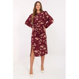 Elegantní midi šaty s jednoduchým, klasickým střihem jsou ideální volbou pro mnoho příležitostí do práce, na pracovní schůzky nebo každodenní vycházky. Vyrobené z kvalitní směsi viskózy a polyesteru spojují pohodlí s odolností. Květinový vzor dodává šaty romantický charakter, a vestavěné polštářky na ramenou jemně zdůrazňují siluetu. Model s dlouhým rukávem a kulatým výstřihem vypadá velmi elegantně. Drapování na pravé straně v oblasti pasu a efektní zástřihy krásně modelují postavu, dodávají jí lehkost a ženskou grácii. Šaty nemají zapínání, což je dělá pohodlné na nasazování.