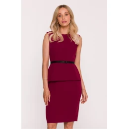 Elegantní úzké šaty s baskinkou jsou klasikou v moderním provedení. Vyrobené z hladké, příjemné látky na podšívce, krásně zdůrazňují ženskou postavu a zároveň poskytují pohodlí při nošení. Model má jemný polooblý výstřih a bezrukávový střih, který se skvěle hodí jak do kanceláře, tak na elegantní události. Pas je jasně zdůrazněn páskem a subtilní baskinkou, která opticky modeluje postavu a jemně zakrývá oblasti boků a břicha. Spodek šatů má přiléhavý úzký střih, který zdůrazňuje nohy a dodává celku klasický charakter. Na zádech jsou dva skryté zipy, díky nimž se šaty dokonale přizpůsobí postavě. Celou věc doplňuje tenký pás v kontrastní barvě, zapínající se na knoflík, stylový akcent, který dodává charakteru. Navrženo a ušito v Polsku s důrazem na detaily a vysokou kvalitu zpracování.