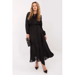 Elegantní šaty ve střihu rozkroku jsou stylovým návrhem vhodným na každý den, do práce a na slavnostní příležitosti. Vyrobené z kombinace lyocellu a polyesteru se krásně skládají na postavě, poskytují pohodlí a jemný, plynulý efekt. Model má podšívku, která zvyšuje pohodlí nošení a zdůrazňuje kvalitu zpracování. Šaty okouzlují hladkým zpracováním a do detailu propracovanými detaily. V pasu je široký šátek k zavázání, který efektně modeluje pas a dodává celku elegantní charakter. Vložené polštářky na ramenou dávají postavě výraznou linii a moderní proporce. Dlouhý rukáv a výstřih s vázáním dodávají šatům ženský, stylový vzhled, zatímco maxi délka zdůrazňuje jejich eleganci a nadčasovost. Bez zapínání je model pohodlný a snadno se obléká. Jedná se o ideální šaty pro ženy, které oceňují eleganci, pohodlí a rafinované detaily.