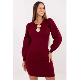 Elegantní pletené šaty ve stylu olivového olověného střihu jsou ideální volbou na každý den, do práce i na výjimečné příležitosti. Jejich hladký vzor zdůrazňuje nadčasový, minimalistický charakter, který se skvěle hodí jak k jednoduchým, tak k výraznějším stylizacím. Model je vyroben z měkké a elastické směsi viskózy a polyesteru, díky čemuž se šaty skvěle přizpůsobí postavě, jsou pohodlné a příjemné na nošení. Mini délka dodává ženský půvab, zatímco dlouhý rukáv zajišťuje, že se šaty skvěle hodí i do chladnějších dnů. Kulatý výstřih zdůrazňuje klasickou linii, zatímco nafouklé rukávy dodávají celku módní, elegantní akcent a lehkost. Styl doplňují odpínatelné zlaté brože, které lze libovolně aranžovat nebo úplně sundat, vytvářejíce různé varianty stylizace, od decentních po velmi efektní. Jsou to šaty, které spojují pohodlí pleteniny se šarmem elegantního střihu, ideální pro ženy, které ocení eleganci a moderní styl.
