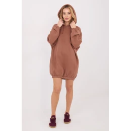 Tříčtvrteční šaty ve stylu oversized jsou pohodlným a stylovým návrhem pro každodenní outfit. Vyrobené z vysoce kvalitní bavlny s přídavkem elastanu zaručují pohodlí, pružnost a volnost pohybu. Hladký vzor zdůrazňuje jejich univerzální charakter a umožňuje snadné sladění s různými doplňky. Model s mini délkou, dlouhými rukávy a praktickou kapucí se obléká přes hlavu. Vsazený gumový lem na spodní části jemně staží šaty, dodává jim moderní vzhled a lehce sportovní charakter. Zateplení poskytuje teplo v chladnějších dnech a kapsy skryté v bočních švech zvyšují funkčnost. Ideální volba na každý den, k nošení s teniskami, sneakers nebo kotníkovými botami.