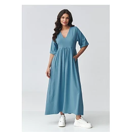 Elegantní maxi šaty jsou ideální kombinací pohodlí a nadčasové elegance. Jejich volný a uvolněný střih se krásně přizpůsobuje postavě, poskytujíc pohodlí po celý den. Jemný výstřih ve tvaru písmene V decentně zdůrazňuje linii krku, zatímco odřezání pod prsy dodává celku lehkost a ženský charakter. Dlouhé šaty jsou vyrobeny z příjemného materiálu, který je příjemný na dotek a prodyšný, a tak se hodí jak do teplých dní, tak do vrstvených stylizací. Krátké rukávy a rozparky po bocích jí dodávají moderní vzhled a volnost pohybů. Šaty skvěle ladí s doplňky od sportovních tenisek po elegantní sandály nebo botky. Jedná se o univerzální dámské šaty, které se hodí na mnoho příležitostí, ať už do práce, na procházku, setkání s přáteli nebo dovolenou.